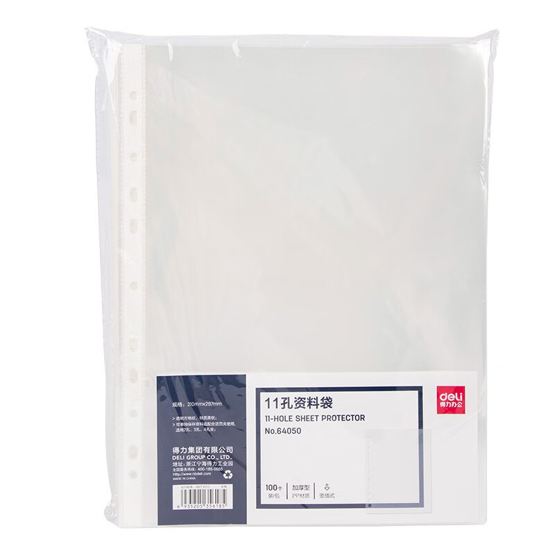 得力64050加厚11孔透明保护套 文件袋资料袋 100个/包