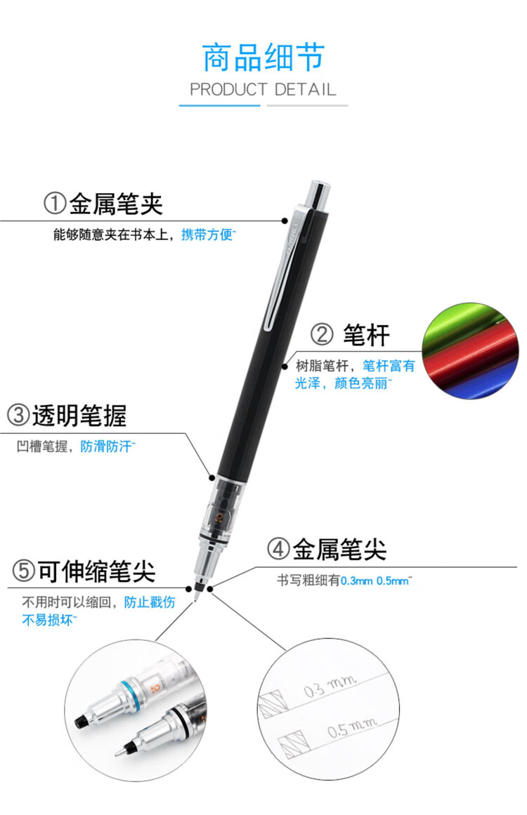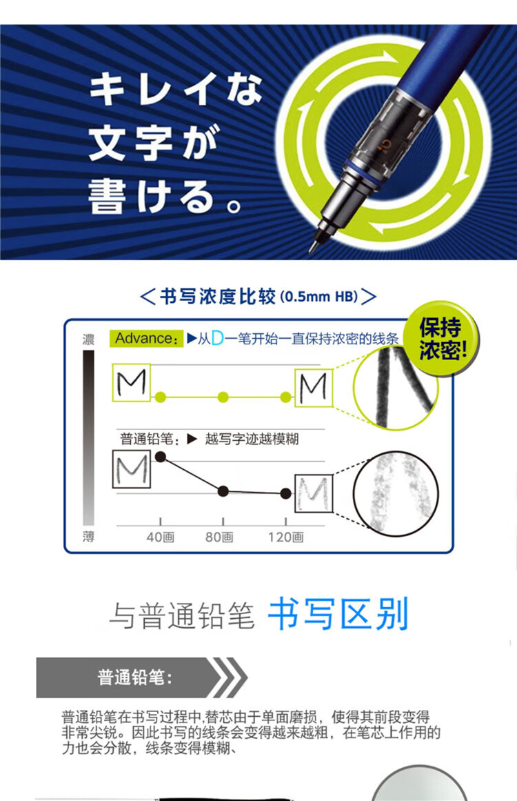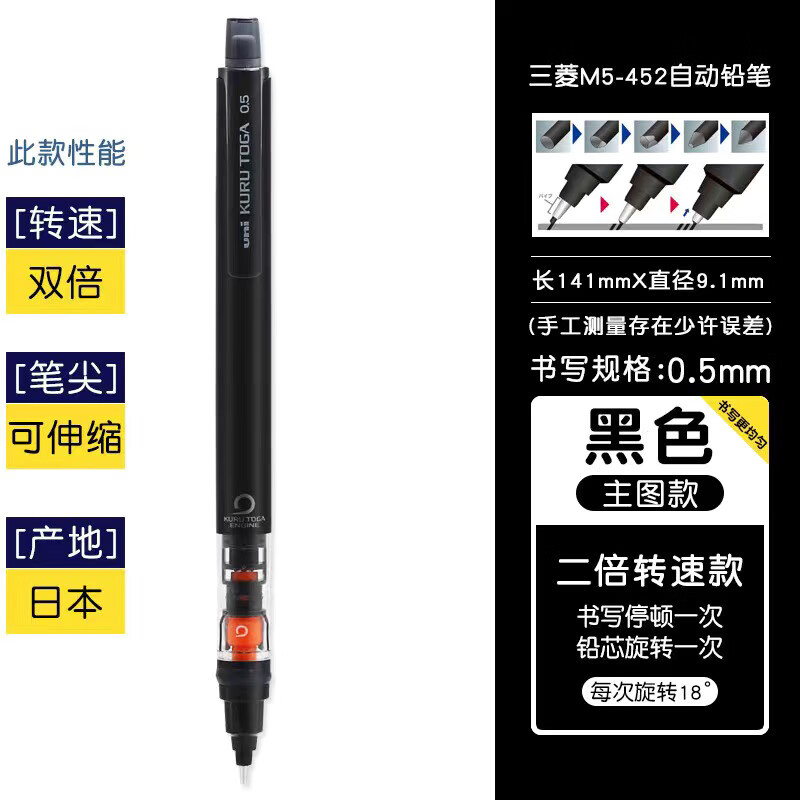 uni三菱M5-452不断芯2倍转速自动铅笔 0.5黑色