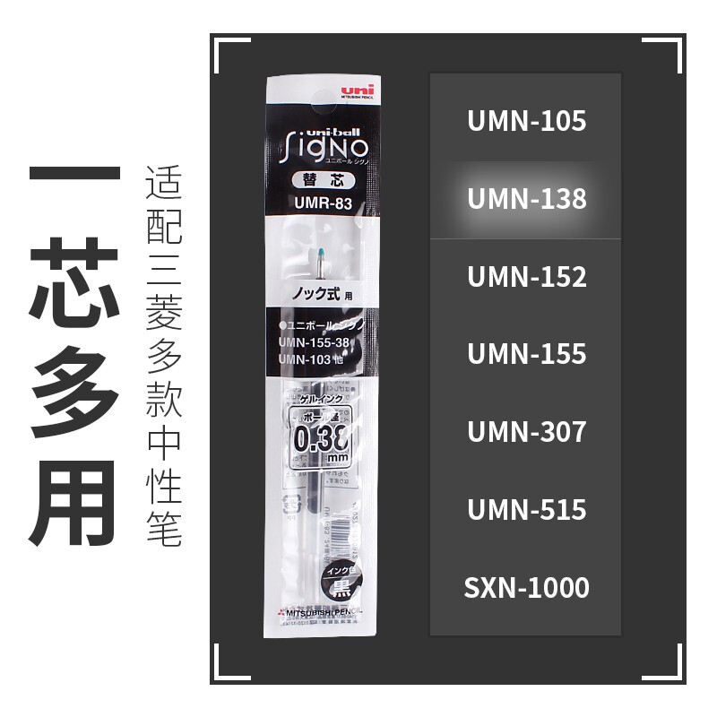 uni三菱UMR-85N按动式中性笔芯 适用UMN-155/105/138黑色1支0.5