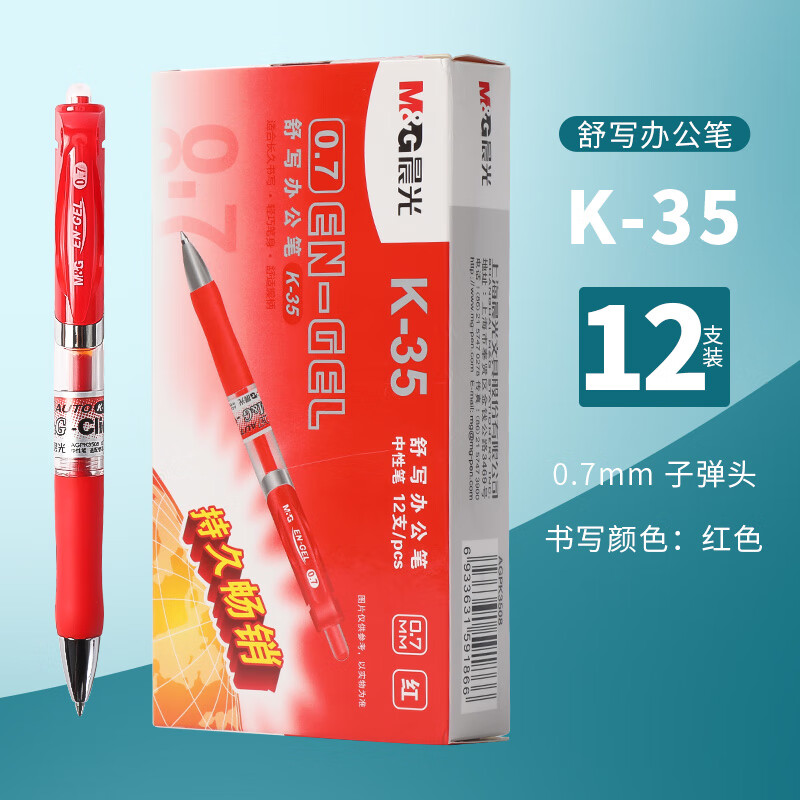 晨光0.7mm按动中性笔k35 红色12支/盒