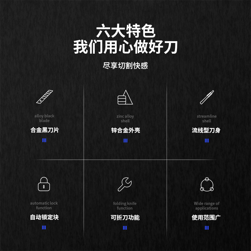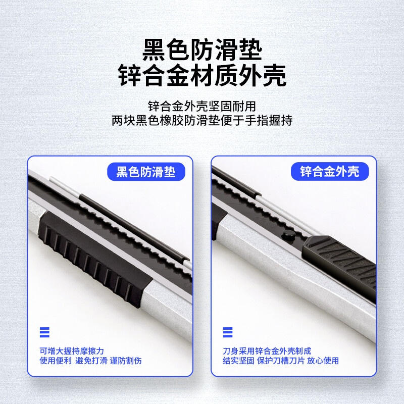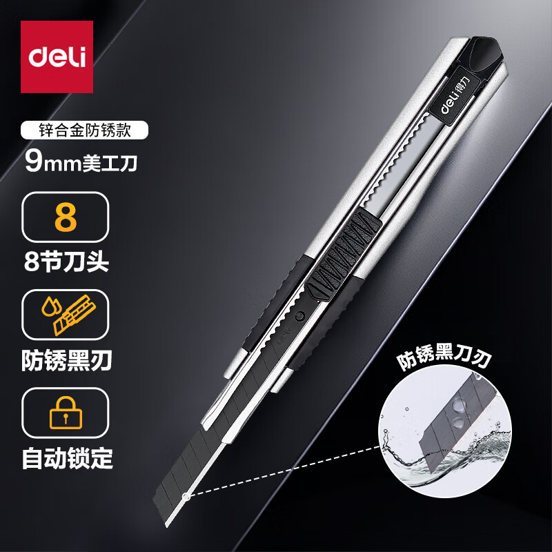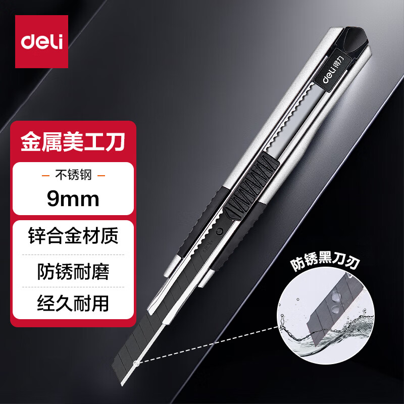得力(deli)黑刀片锌合金美工刀 安全自锁功能裁纸刀 2056S