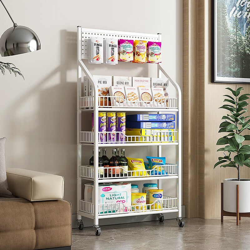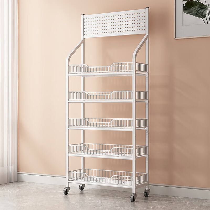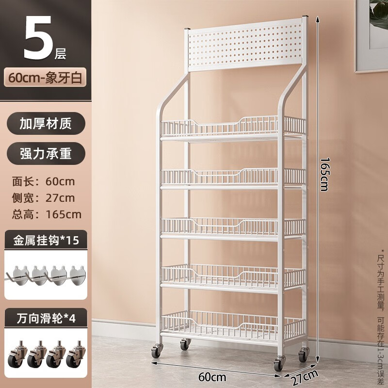 多层置物架子 白-5层60长-带轮款