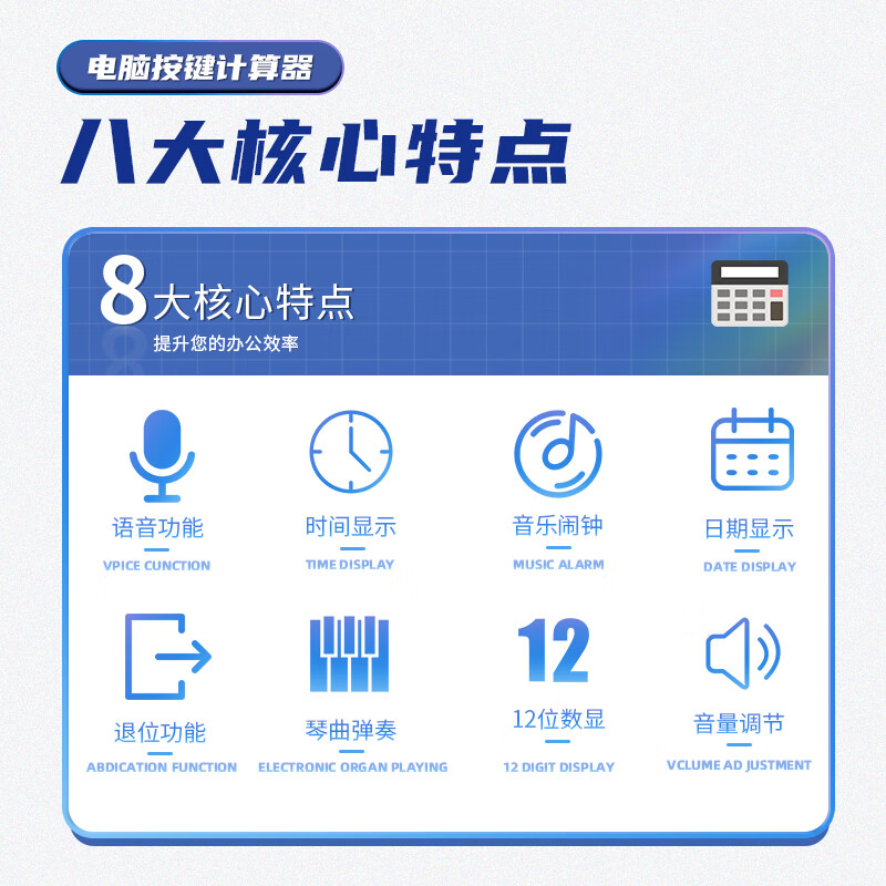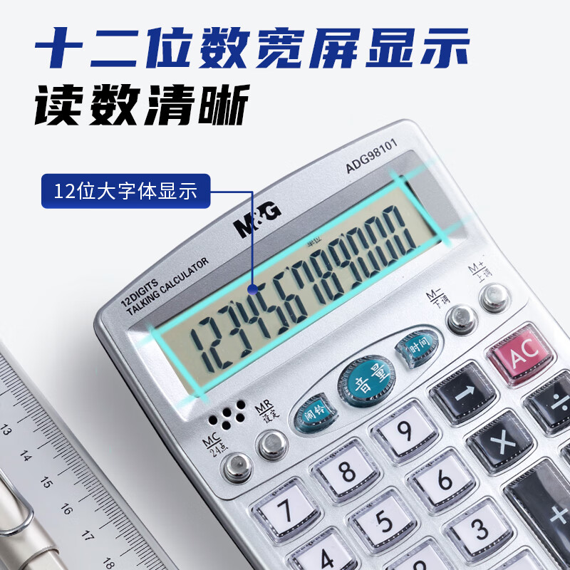 晨光(M&G)文具语音型计算器 水晶按键桌面计算机 学生/办公通用12位大屏幕计算器 银色单个装ADG98101