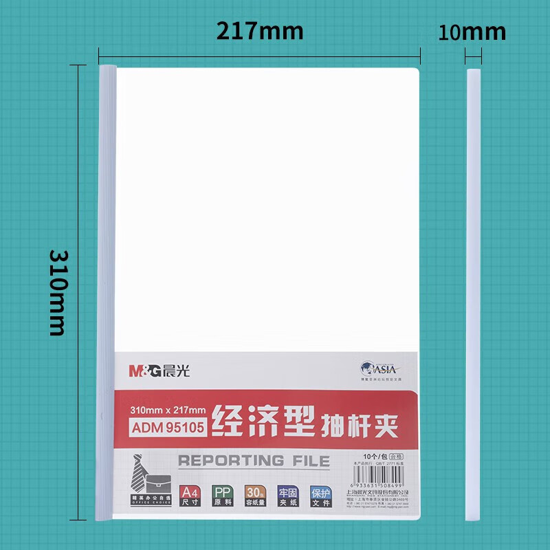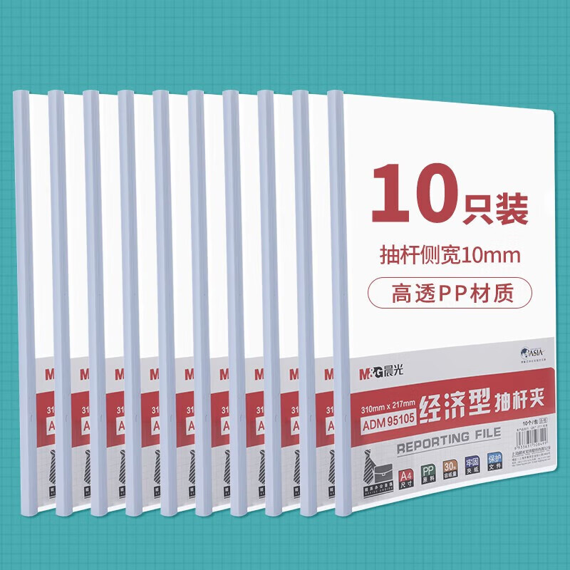 晨光(M&G)A4/10mm白色三角杆抽杆夹 办公报告夹拉杆夹 资料整理收纳文件夹 10个装ADM94520A