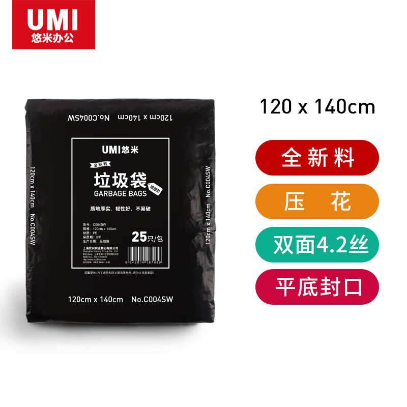 悠米(UMI) 120*140 压花 平口垃圾袋 双面4.2丝67克/只全新料 25只