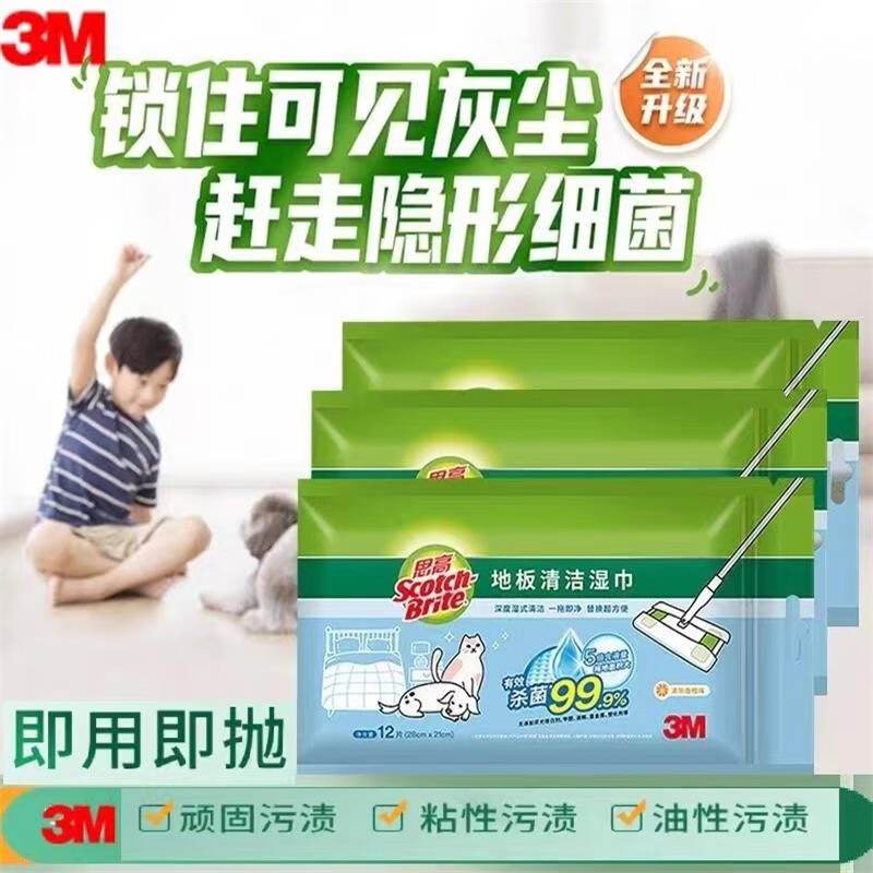 3M思高可抛式除尘湿纸巾抑菌湿巾*5包*60页