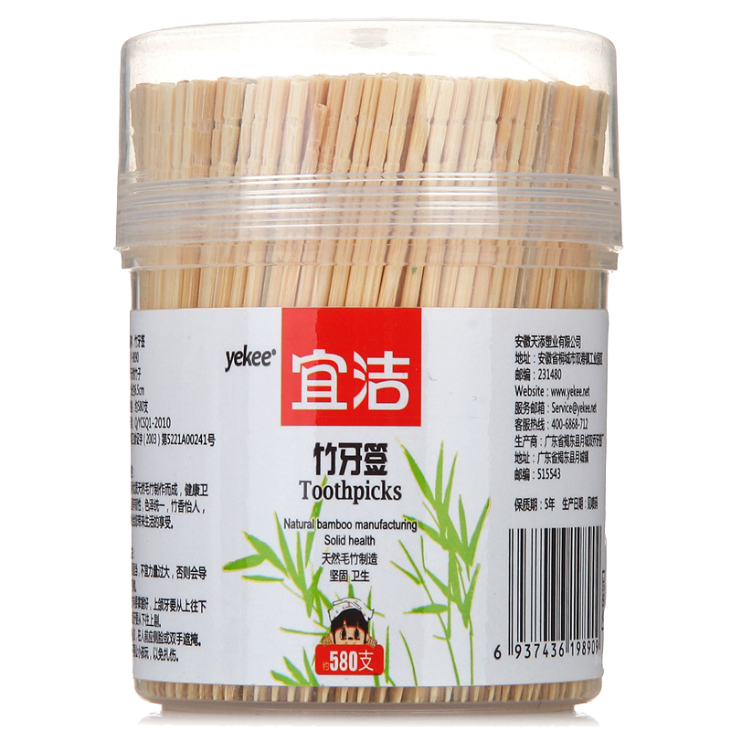 宜洁牙签筒装竹制牙签580枚一次性竹牙签