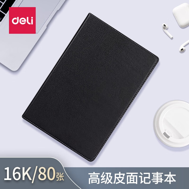 得力(deli)3317高级皮面记事本16K商务笔记本80张 仿皮笔记本会议记录本 颜色随机