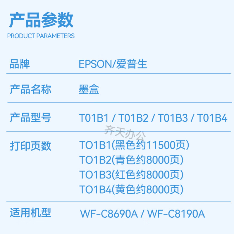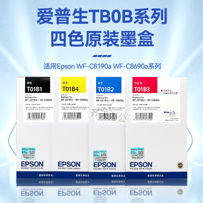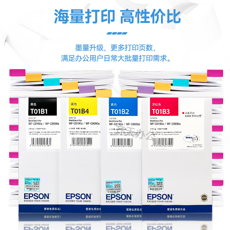 爱普生原装爱普生T01B黑色彩色墨盒 WF-C8190a/WF-C8690a打印机墨水盒 原装T01B1黑色墨盒【约11500页】