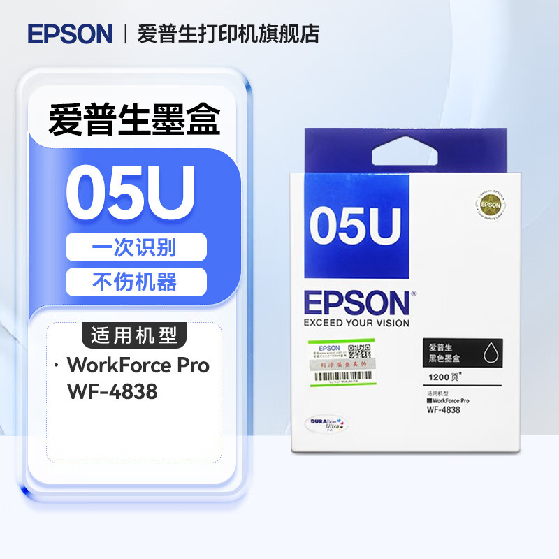 爱普生(EPSON)原装05U 05N墨盒WF-4838 WF-7848 7318 7841打印机黑色彩色墨盒 墨水 原装墨盒05U黑色(约打印1200页)