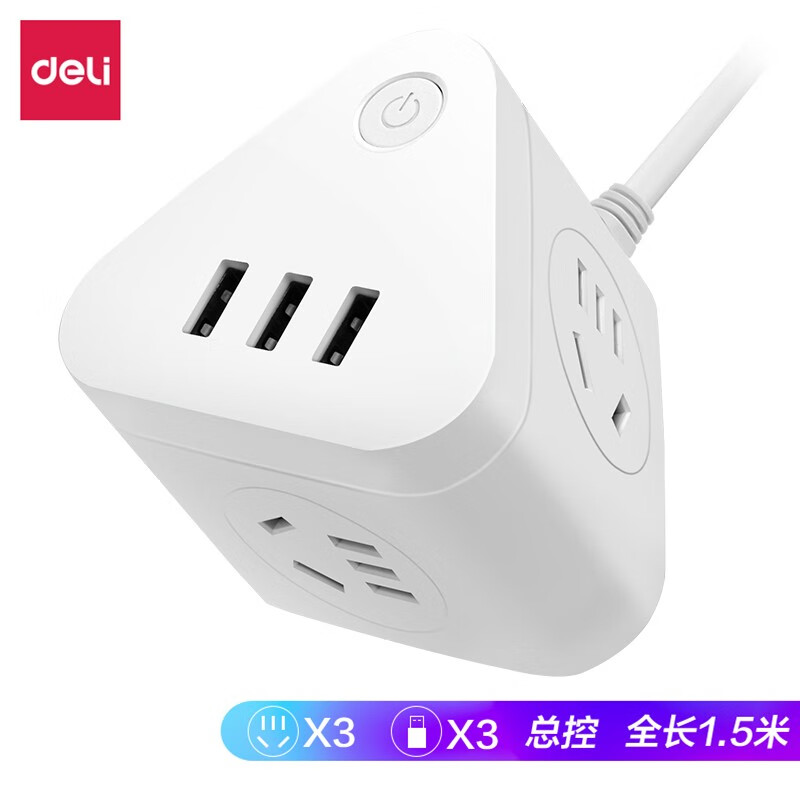 得力 魔方3转带USB接线板 插座(18321)【1.5m线】