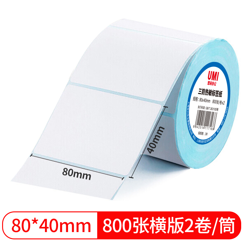 悠米致敬经典三防热敏标签纸 80*40mm 800张(横版)2卷塑封/40卷/箱
