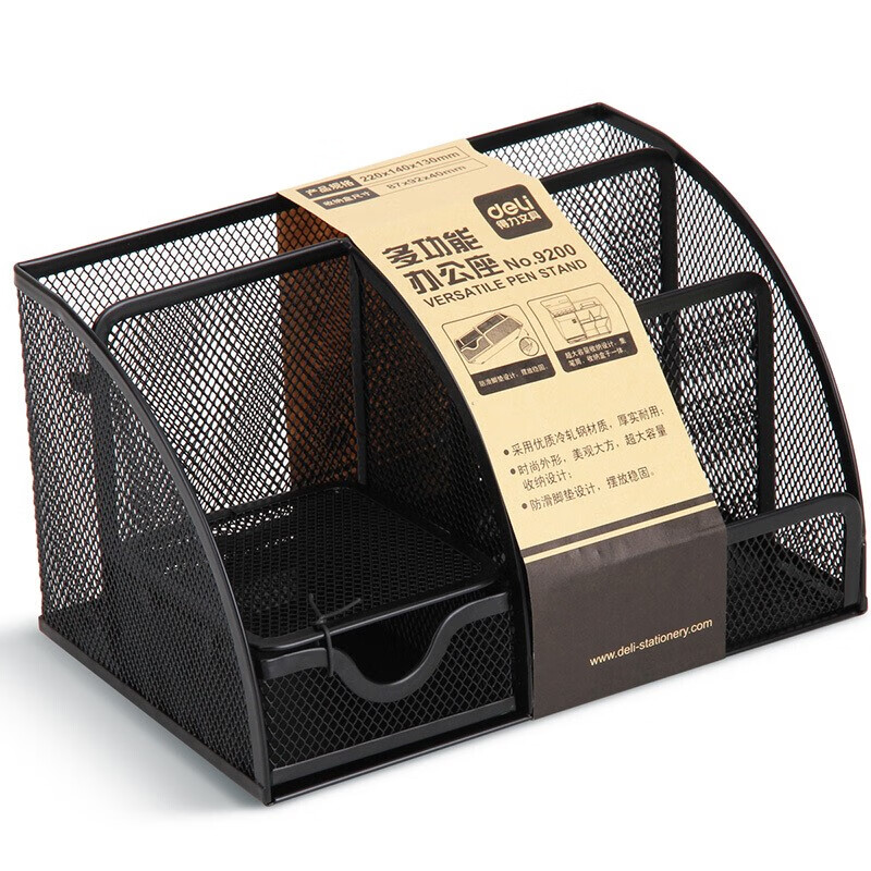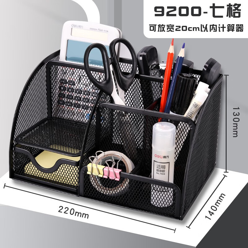 得力网状多功能笔筒 七格款 9200 黑色