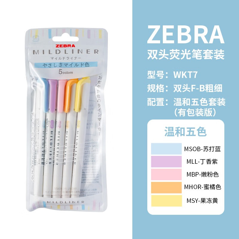 日本ZEBRA斑马WKT7荧光笔(5C-YC)温和色套装