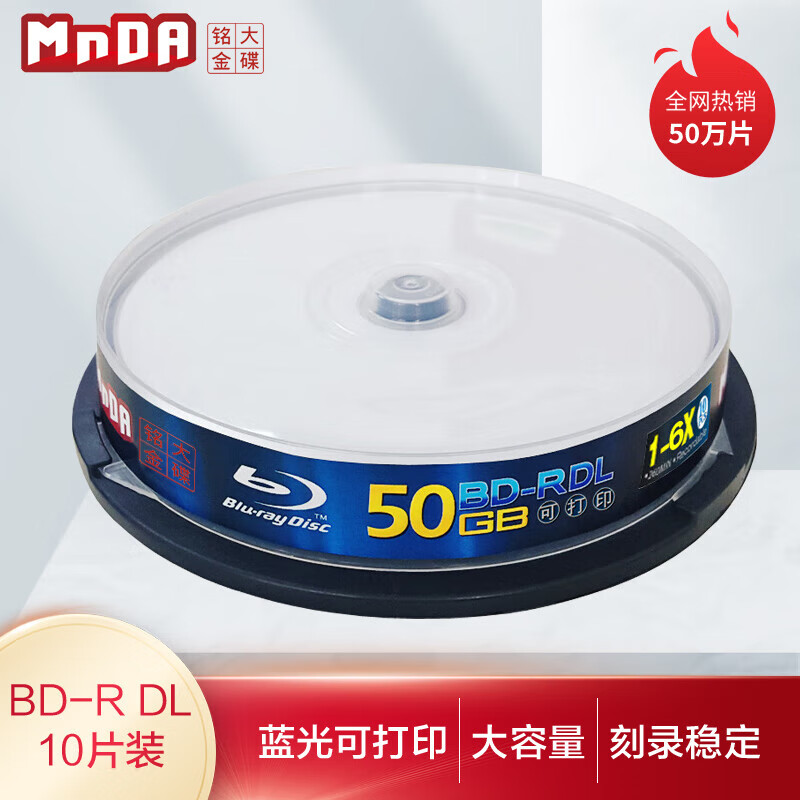 铭大金碟BD-R DL 1-6速 50G 蓝光可打印 10片桶装