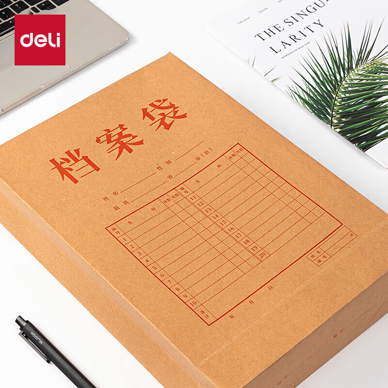 得力(deli)10只A4混浆250g牛皮纸档案袋 侧宽8cm 8386