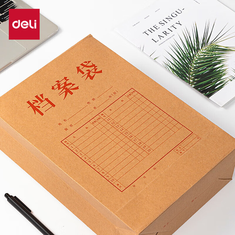得力(deli)10只A4混浆250g牛皮纸档案袋 侧宽10cm 8387