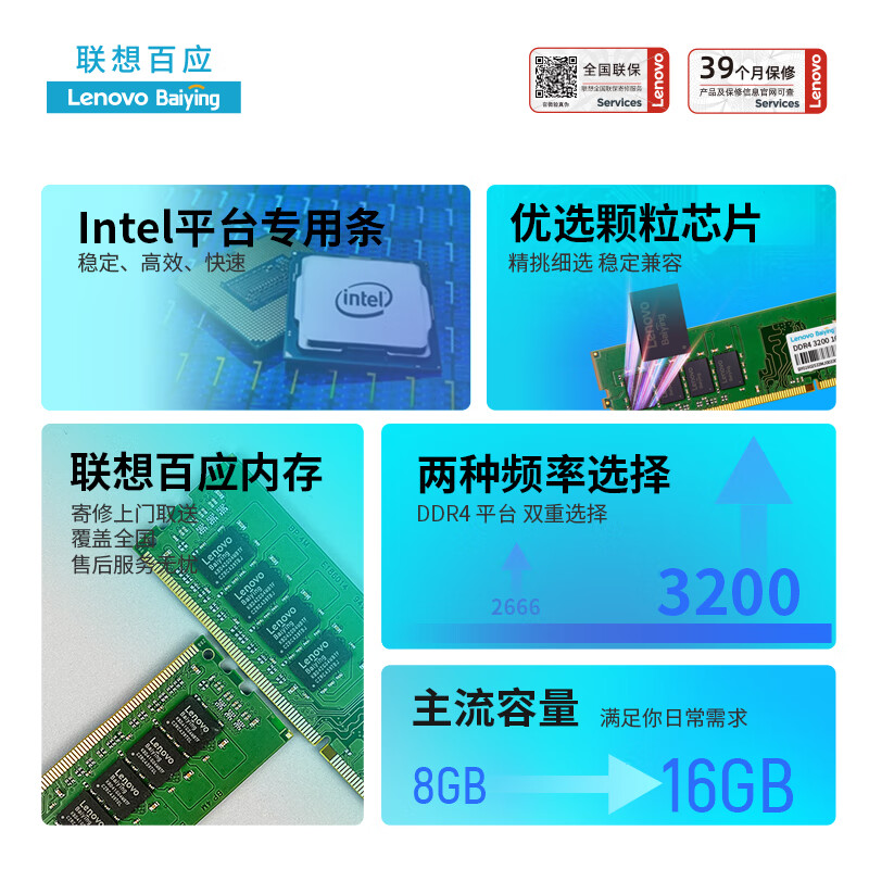联想(Lenovo)16GB DDR4 3200 台式机内存条 联想台式机专用 联想百应