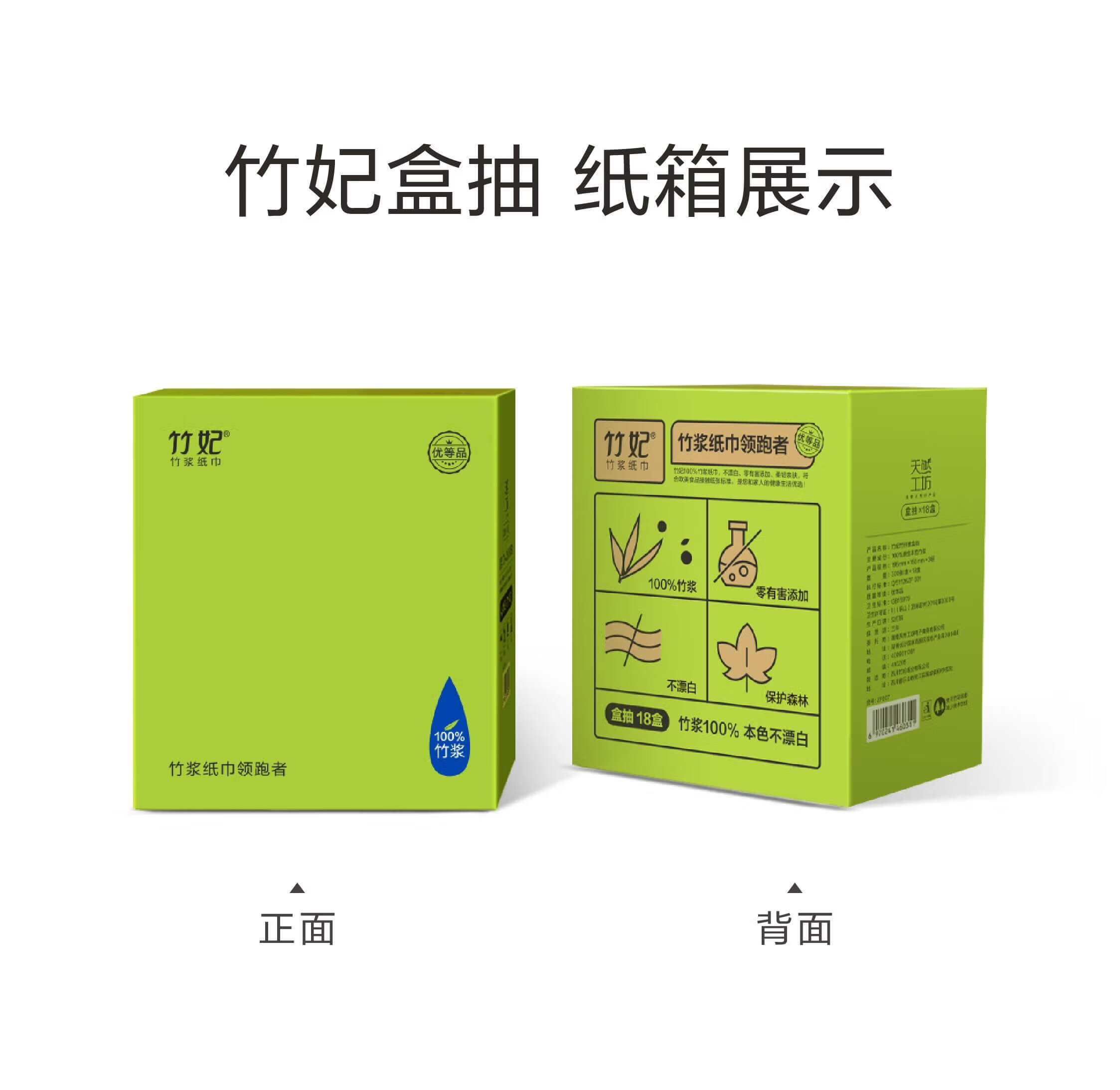 竹妃硬盒装竹纤维本色三层100抽纸巾 整箱18盒