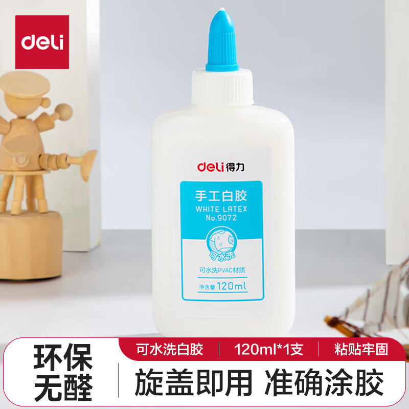 得力(deli)120ml手工白胶 学生文具DIY白乳胶 环保无甲醛可水洗胶水 学习用品 1支装 9072