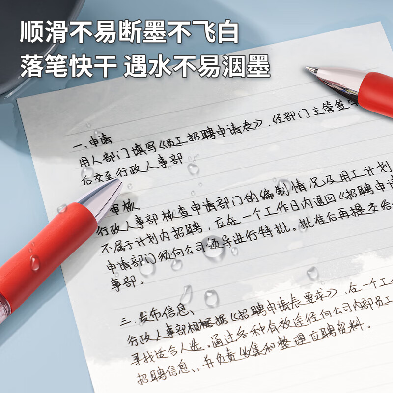 得力S01经典按动中性笔0.5mm弹簧头12支装/盒 红色 12