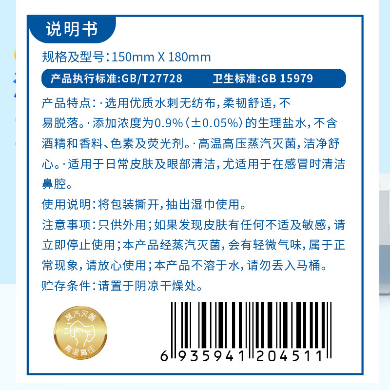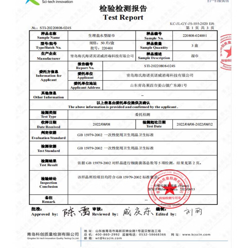 海氏海诺 英诺威 生理盐水清洁湿巾 独立装30片 便携温和手口面部护理清洁