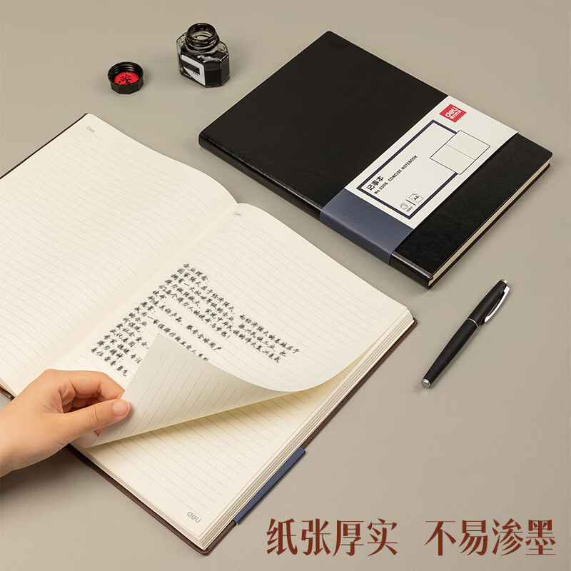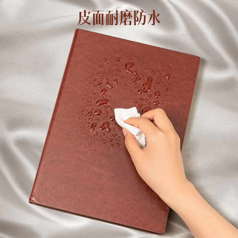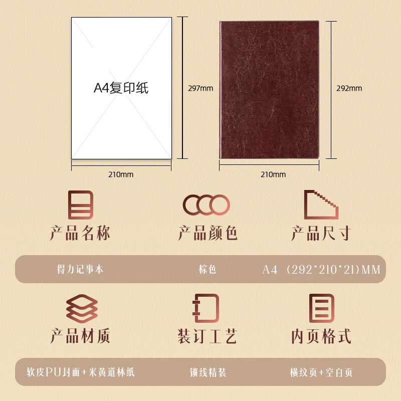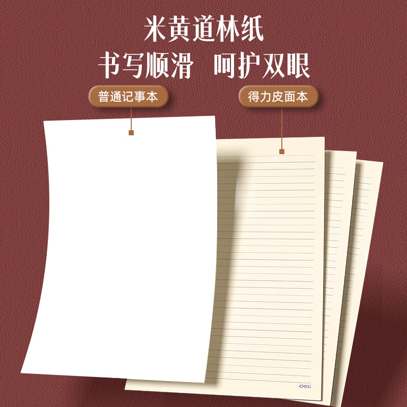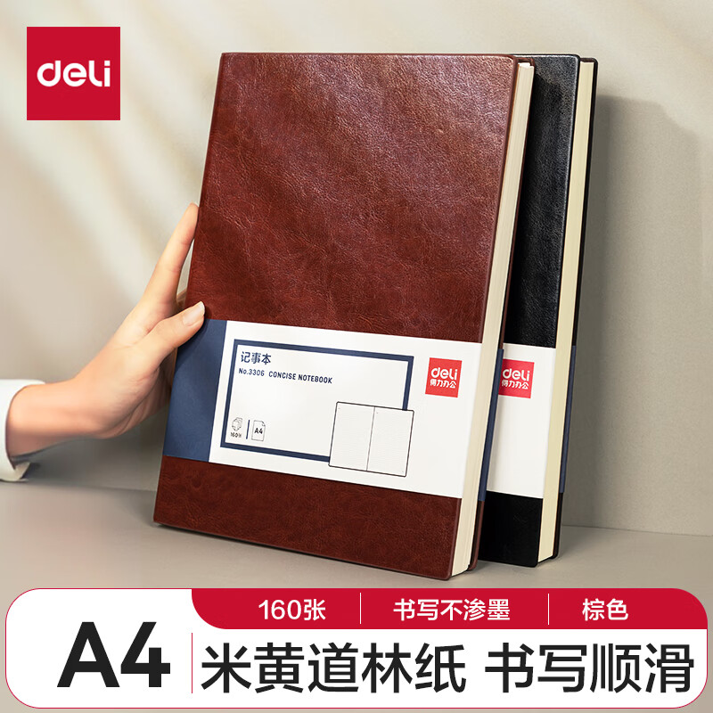 得力(deli)A4/160张商务记事本笔记本子办公用品会议记录皮面本办公日记本 棕色3306