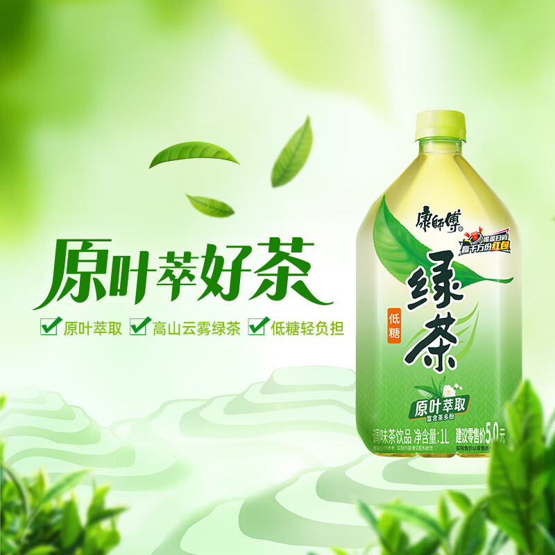 康师傅 绿茶 蜂蜜茉莉味低糖饮品大瓶饮料整箱装 1L*12瓶