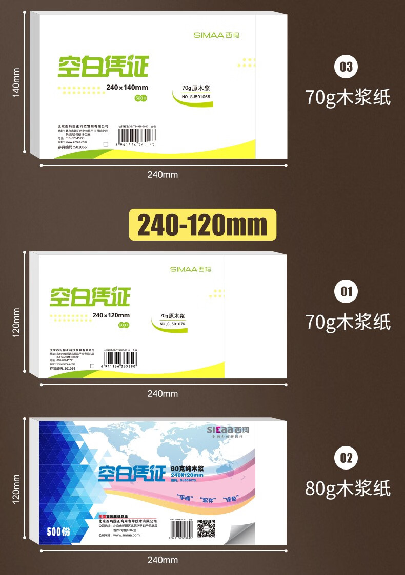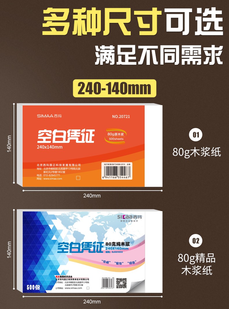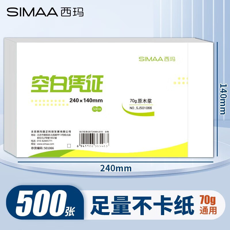 西玛(SIMAA)240-140mm增票版凭证打印纸【畅打款】空白凭证【70g】 500张/包