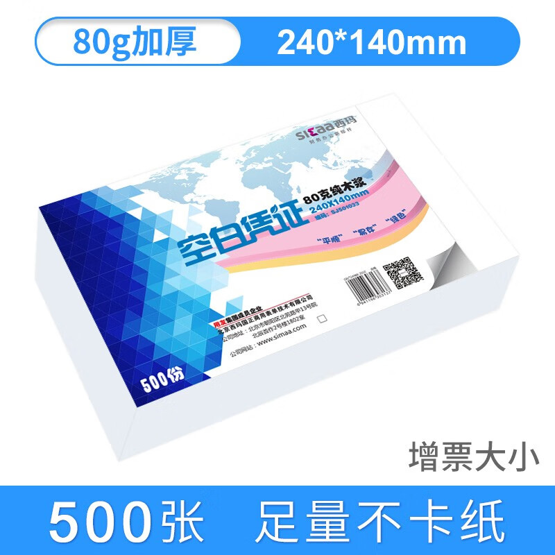 西玛(SIMAA) 空白凭证纸 240*140增票版凭证打印纸复印纸a5电脑打印纸 空白记账凭证纸 【经典款】240-140mm空白凭证80g加厚 500张/包