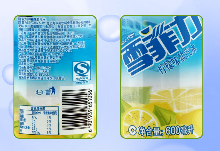 雪菲力上海申美雪菲力盐汽水600ml*24瓶整箱新款柠檬味碳酸饮料可 600mL 24瓶 【5月新货】雪菲力盐汽水*