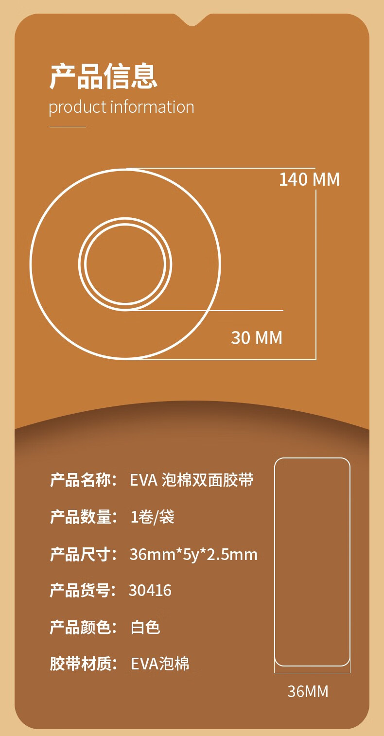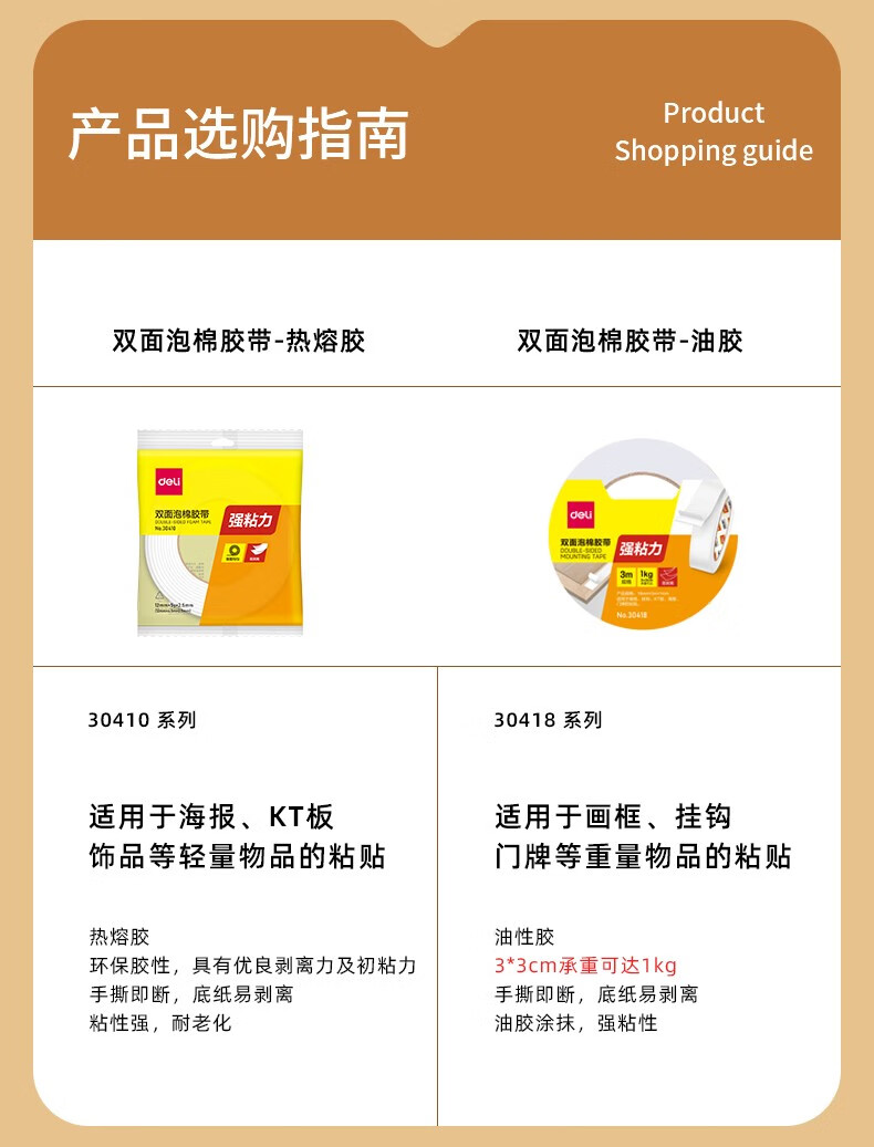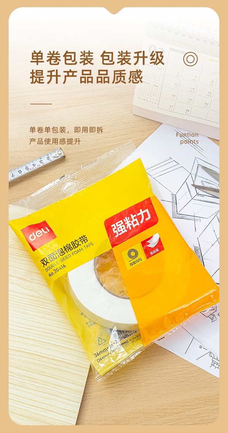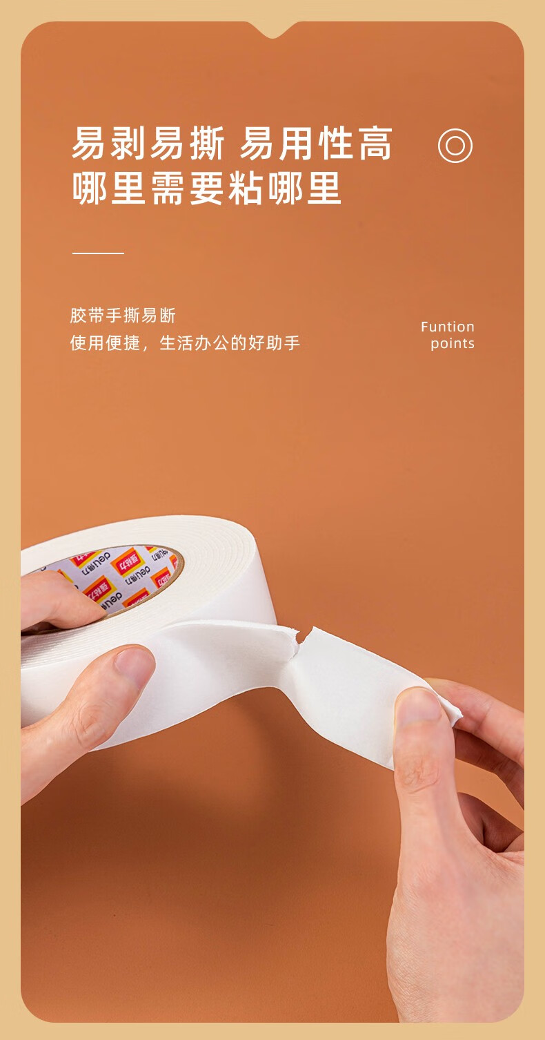 得力(deli)30412(白)泡棉双面胶带2.5mm*24mm*5y