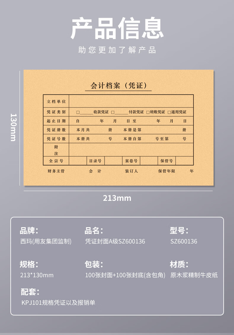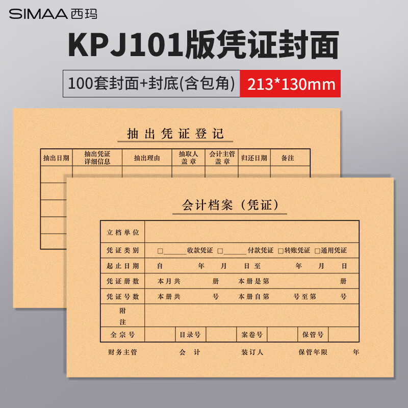 西玛(SIMAA) KPJ101凭证封面100套(含包角 )财务会计记账牛皮纸封皮包角装订存档