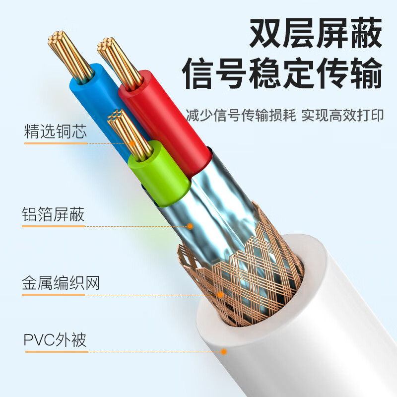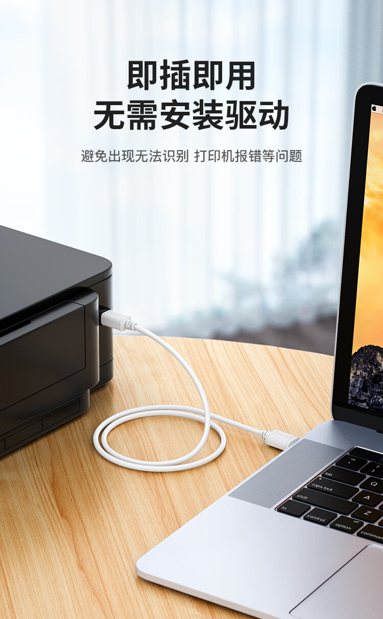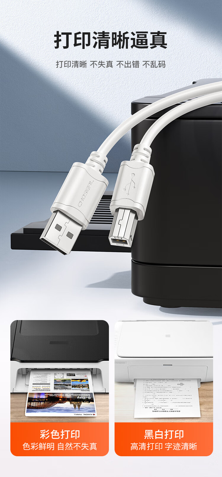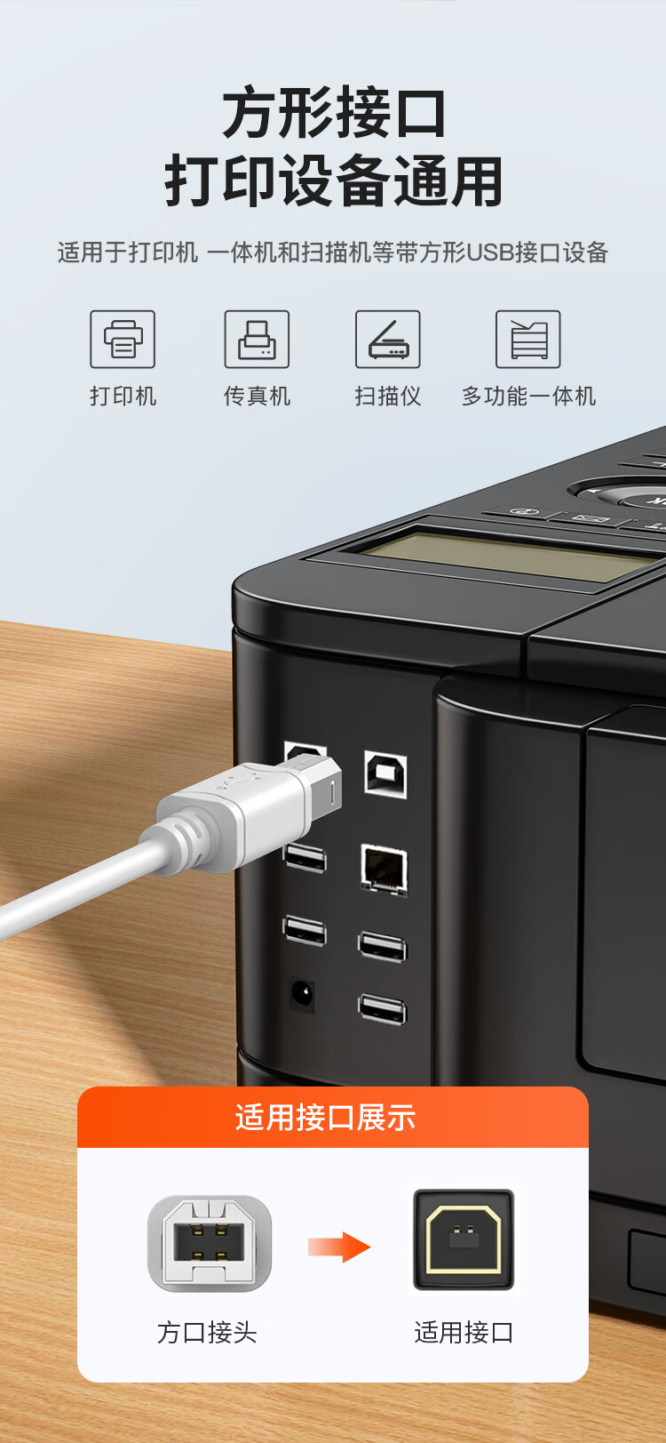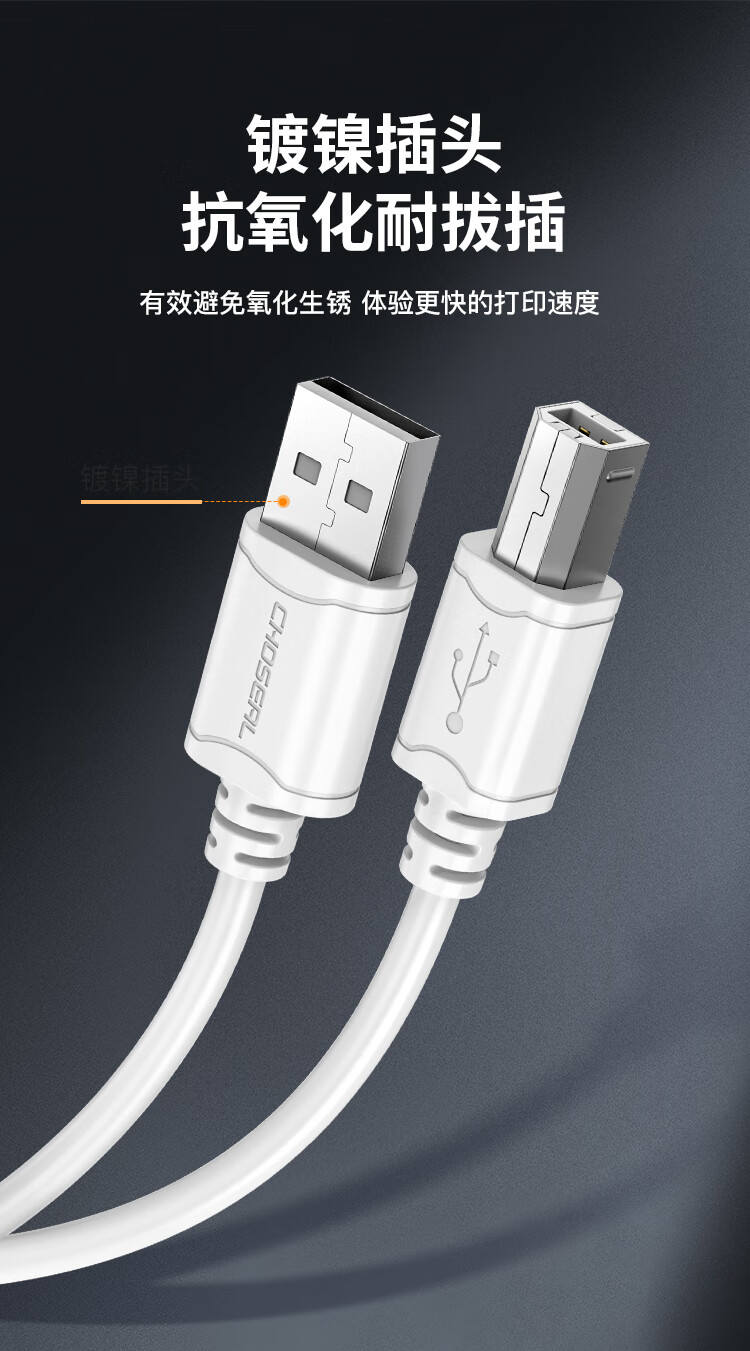 秋叶原 高速USB打印机数据连接线 2.0打印机线 方口usb打印线 适用惠普HP佳能爱普生 1米 QS5307T1