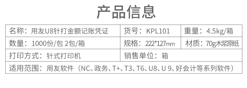 用友KPL101U8金额记账凭证