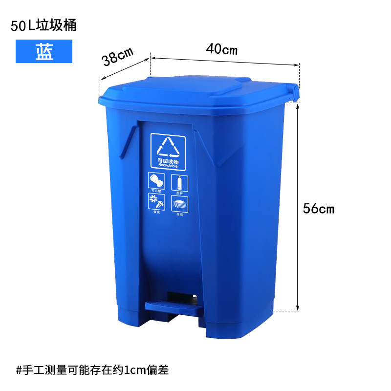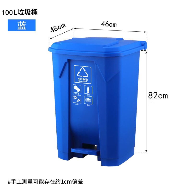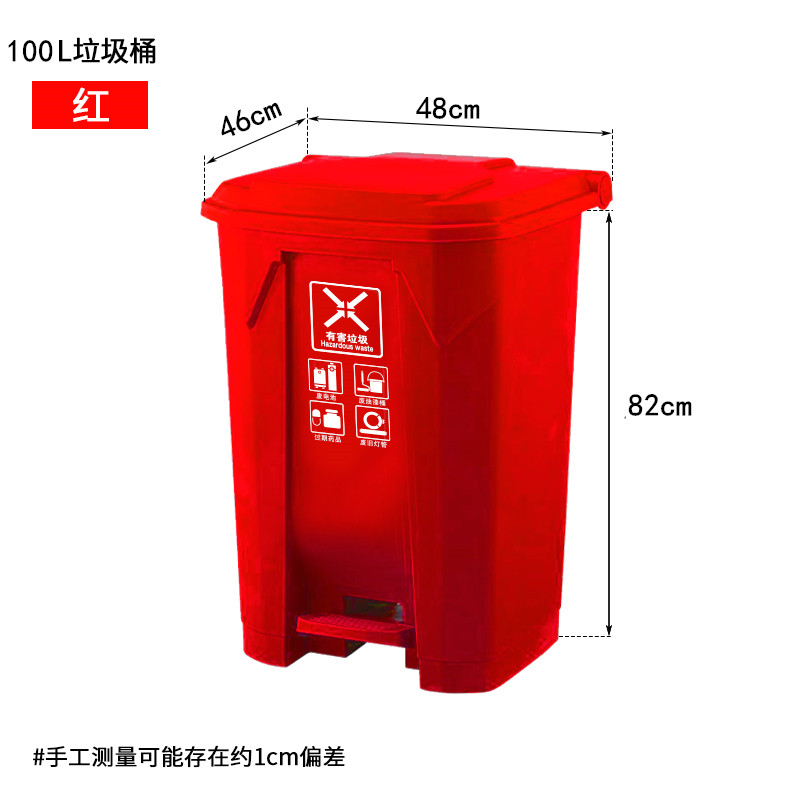 新国标垃圾分类垃圾桶带盖100升脚踏桶红色有害