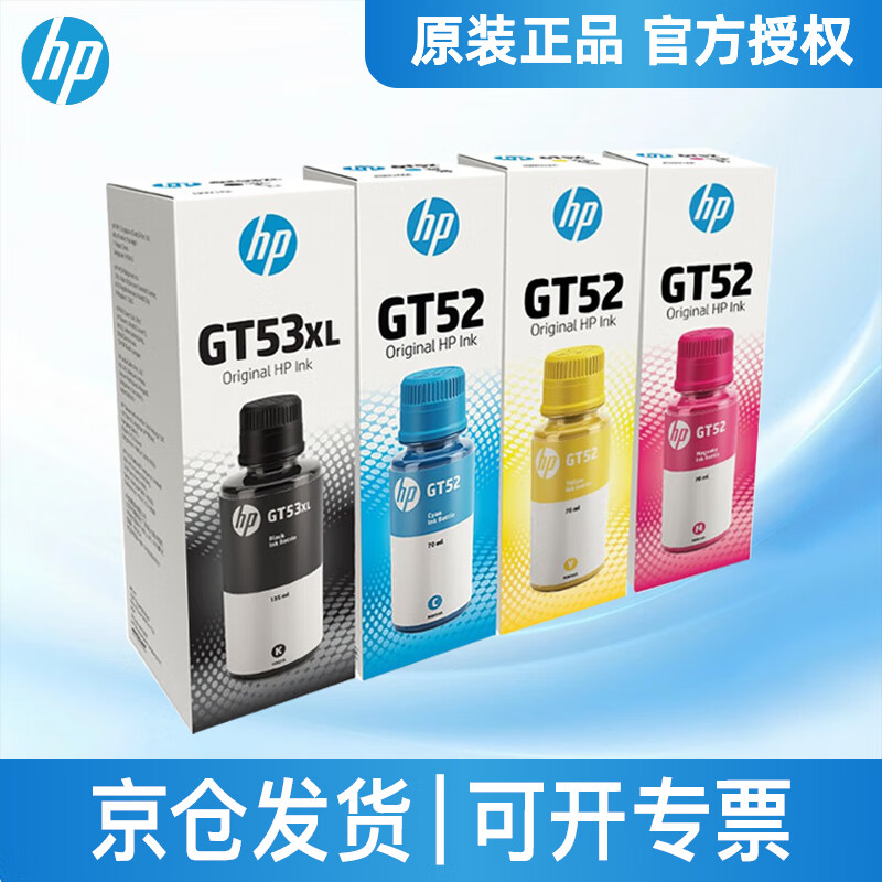 惠普(HP)GT53XL 52墨水原装511 518 519 538 618 510 531 516 GT53XL+GT52四色墨水套装(盒装)