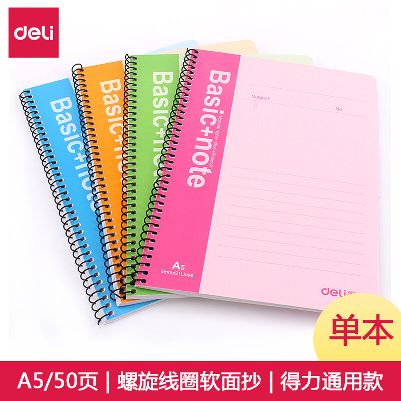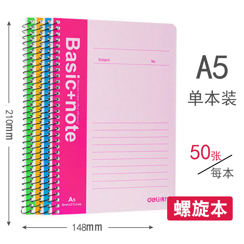 得力(deli)7682 螺旋装订本 A5/50页 1本装 颜色随机