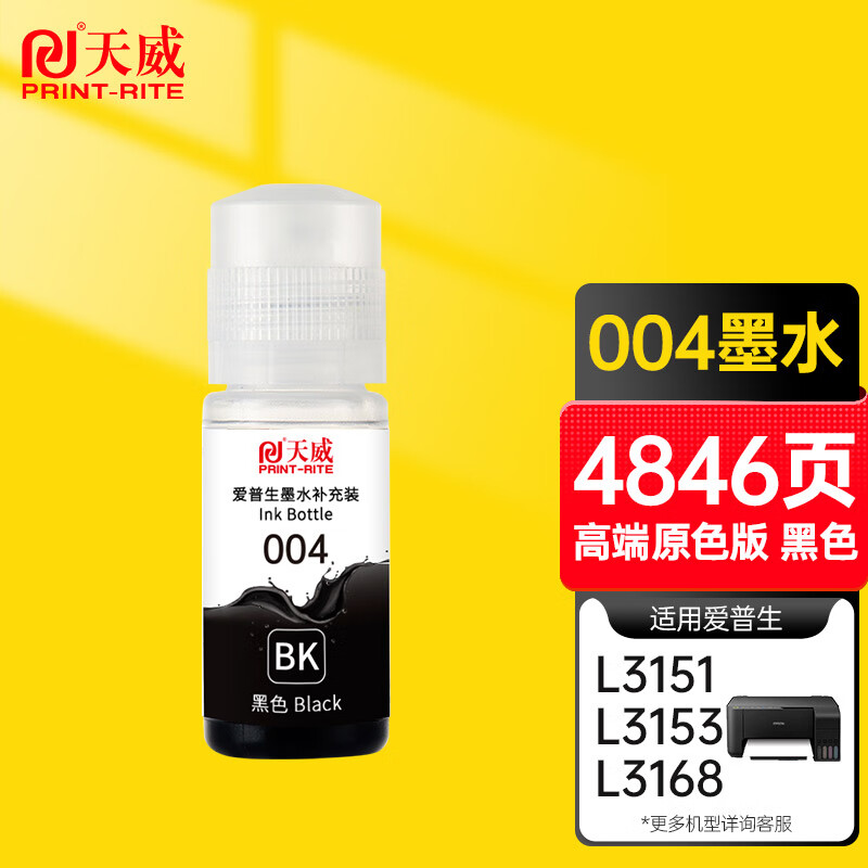 天威004墨水适用爱普生打印机墨水L3251 L3255 L3258 L3256 3558 3556 3266 3153 3268 3158 3219 3253 1258黑色