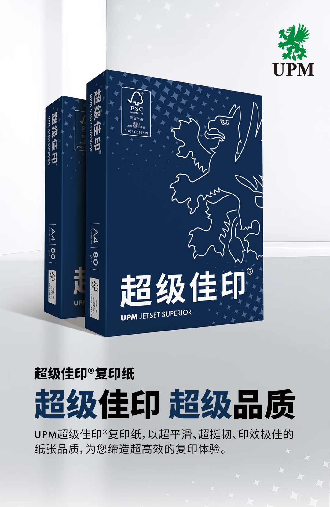 UPM超级佳印 80克A4纸打印纸 500张*5包一箱 高清影印彩打纸 整箱2500张