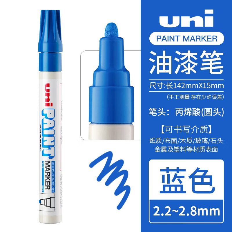 日本uni三菱彩色油漆笔PX-20粗2.2-2.8mm金色婚礼签名笔马克笔白色高光笔黑涂鸦记号笔 蓝色