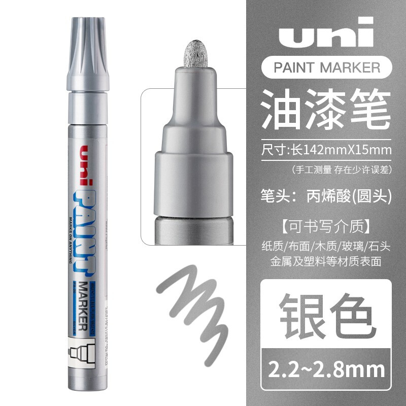 日本uni三菱彩色油漆笔PX-20粗2.2-2.8mm金色婚礼签名笔马克笔白色高光笔黑涂鸦记号笔 银色