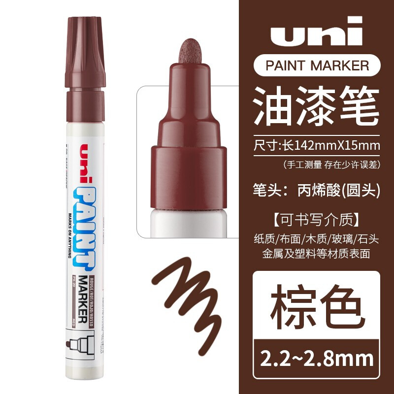 日本uni三菱彩色油漆笔PX-20粗2.2-2.8mm金色婚礼签名笔马克笔白色高光笔黑涂鸦记号笔 棕色