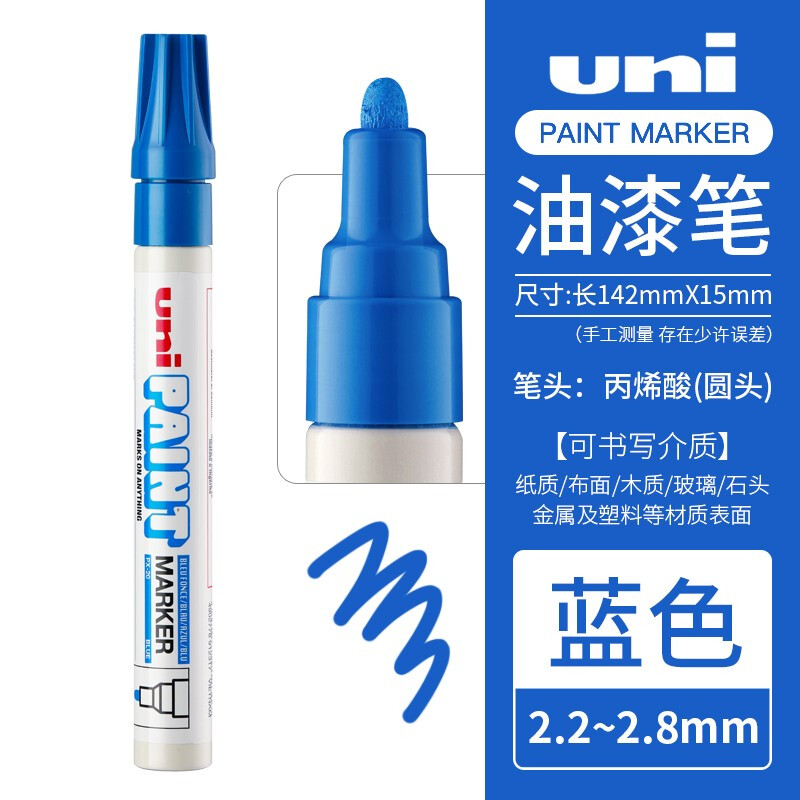 日本uni三菱彩色油漆笔PX-20粗2.2-2.8mm金色婚礼签名笔马克笔白色高光笔黑涂鸦记号笔 浅蓝