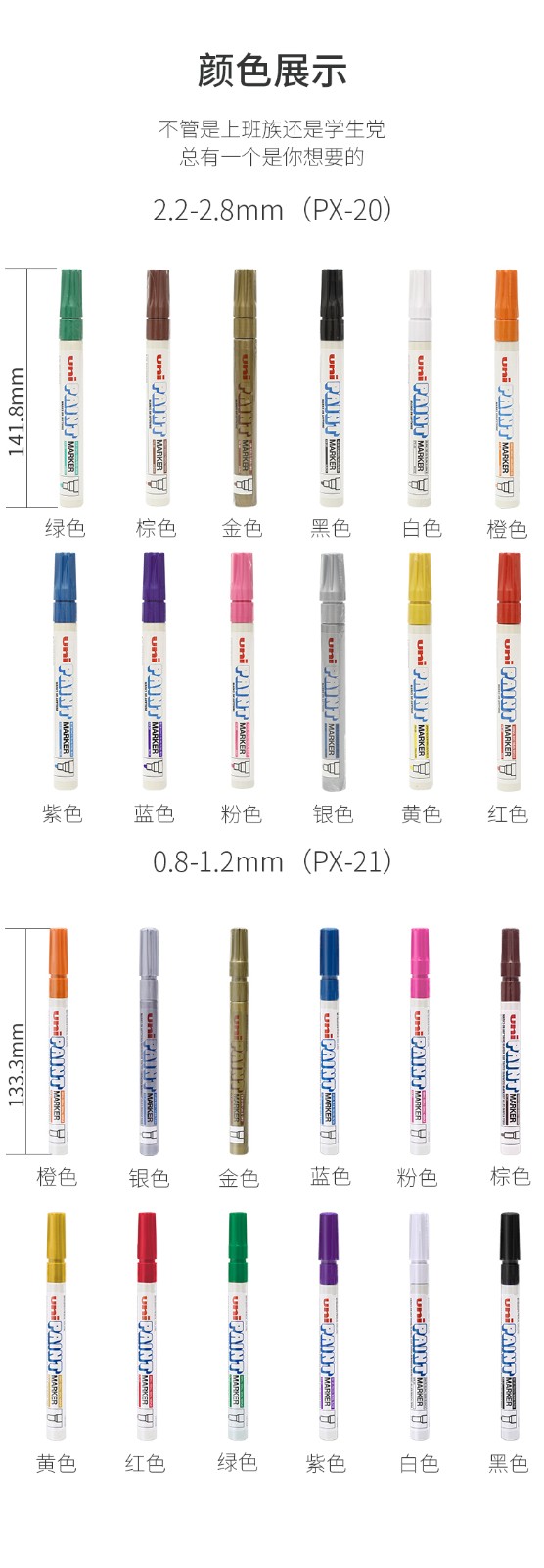 日本UNI三菱PX-21油漆笔0.8-1.2mm补漆婚礼签字笔记号笔中字金色油漆笔记号笔 浅绿色