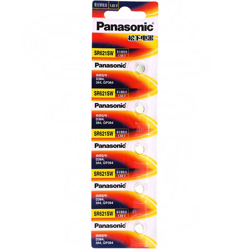 松下(Panasonic)SR621/364/AG1进口纽扣电池1.55V适用于石英手表天梭swatch浪琴SR621SW 五粒