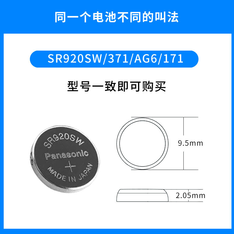 松下(Panasonic)SR920SW/371氧化银纽扣电池 手表电池 适用于天梭阿玛纽扣电子 日本进口5粒装