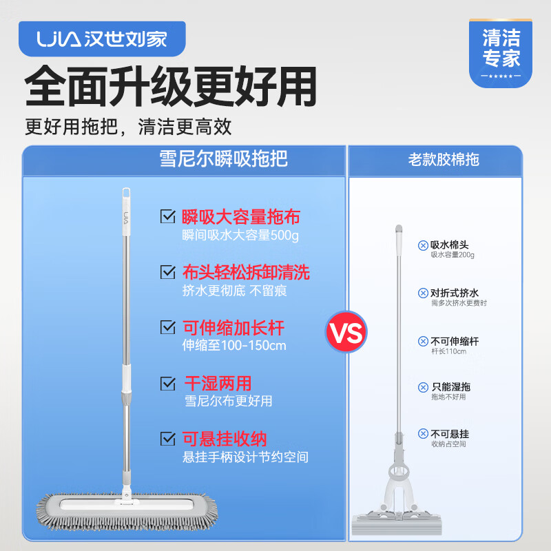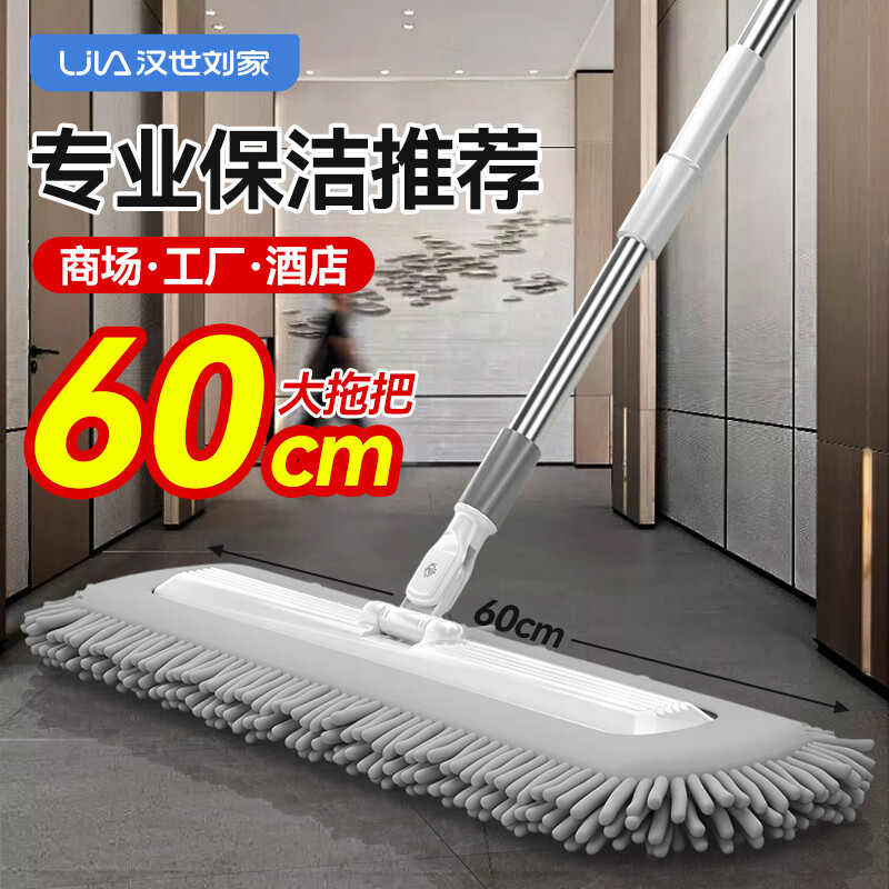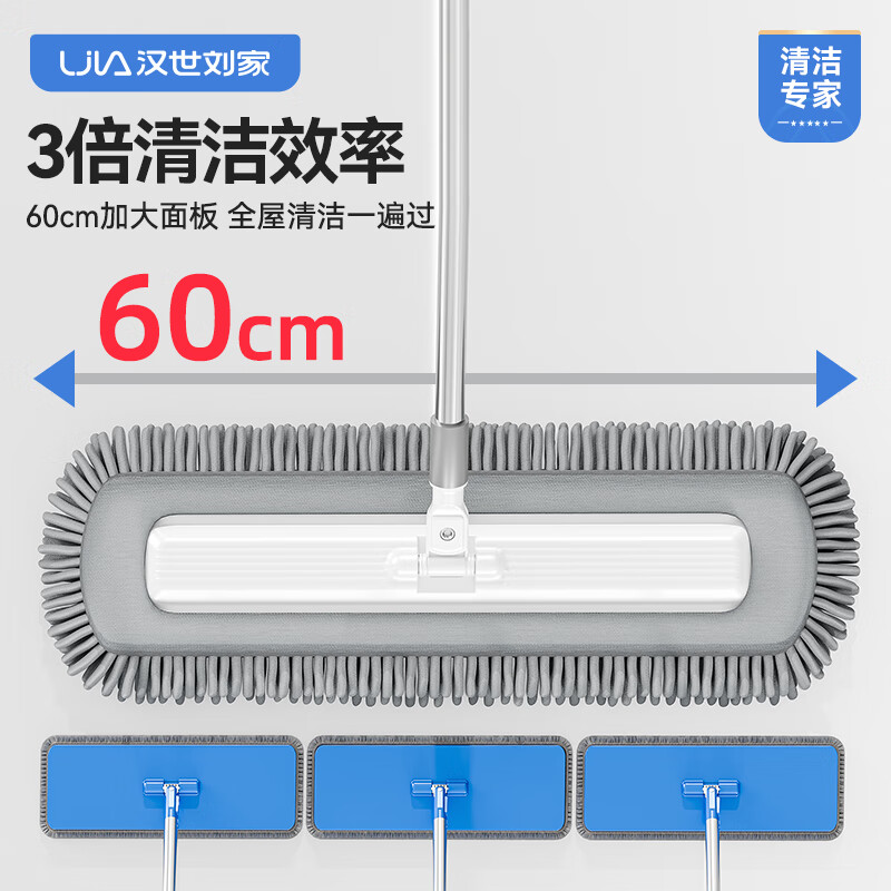 汉世刘家雪尼尔平板拖把家用一拖净无痕保洁专用干湿两用吸水懒人拖布 60cm(86.5-160cm伸缩杆)共2布 1cm