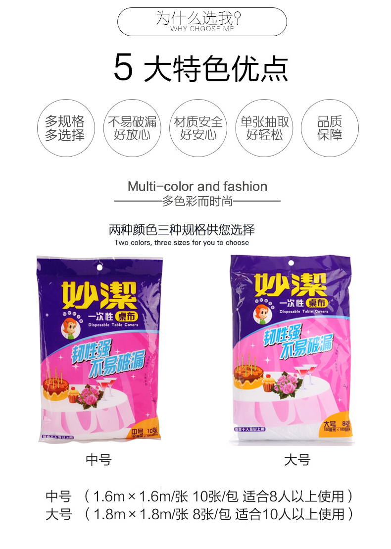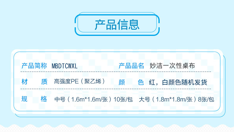 妙洁MBDTCL(白色)C型一次性桌布大号180*180cm