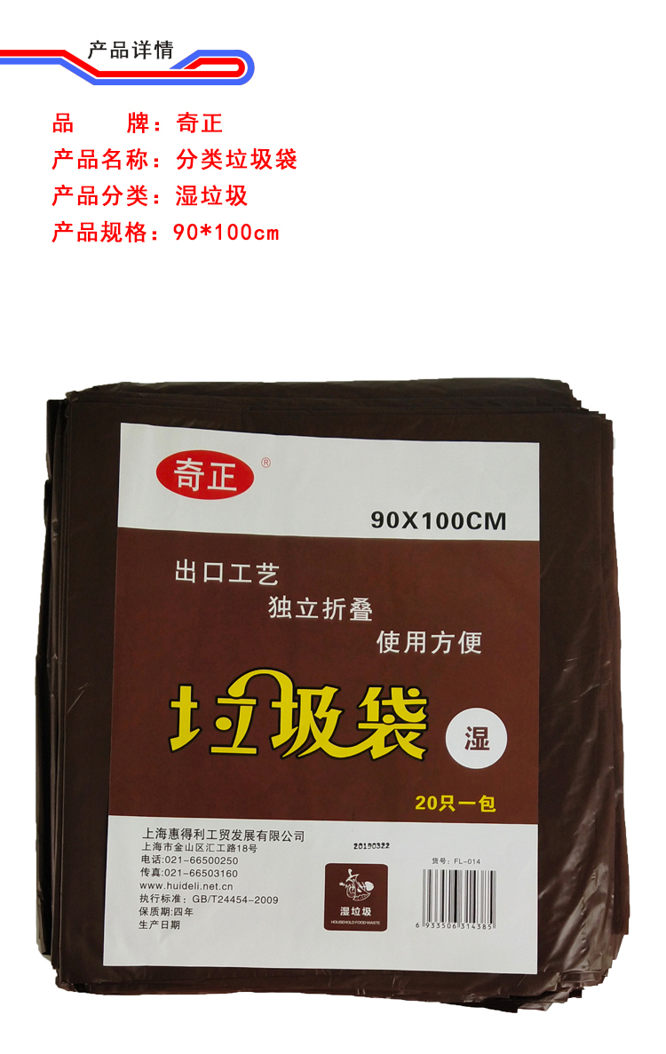 奇正FL-014(咖啡色)垃圾袋(湿垃圾)90*100cm*2S